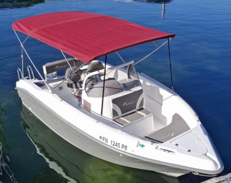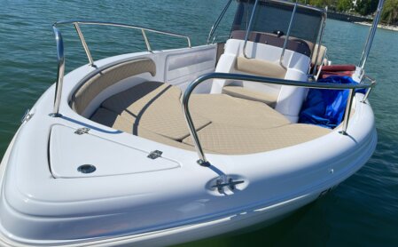 Für 8 Personen, mit Außenborder 100 PS, Sonnenliege, Badeleiter, Radio-Bluetooth- und USB-Player, L-6,20m, B-2,50m
